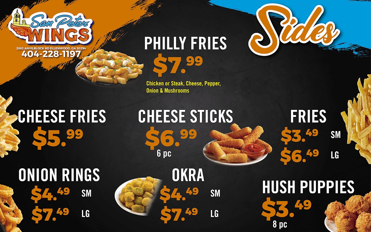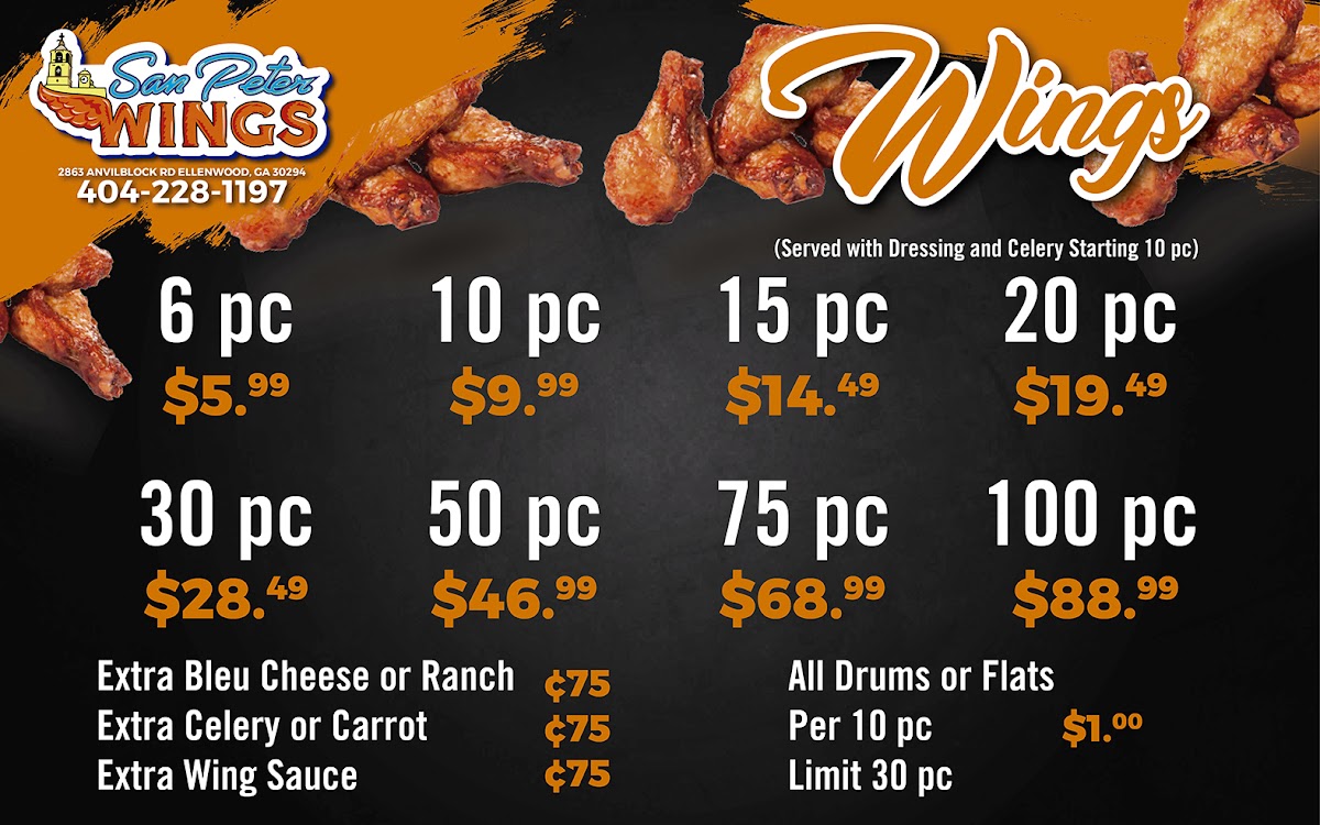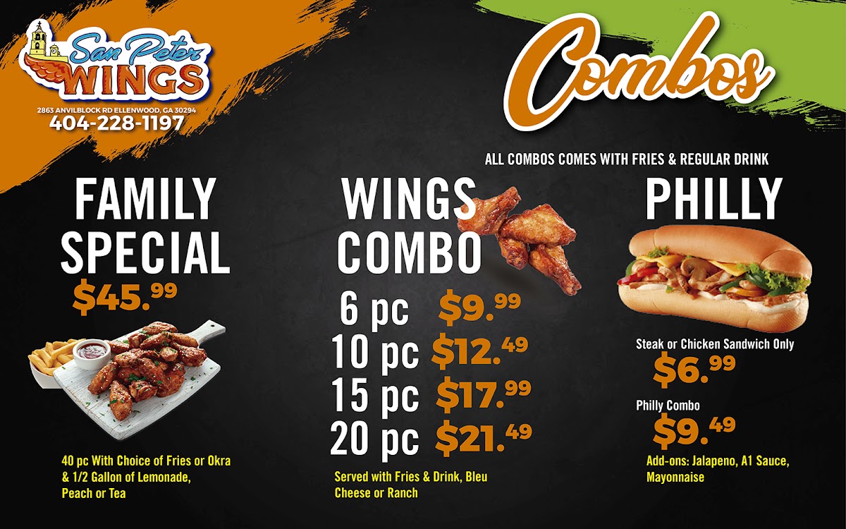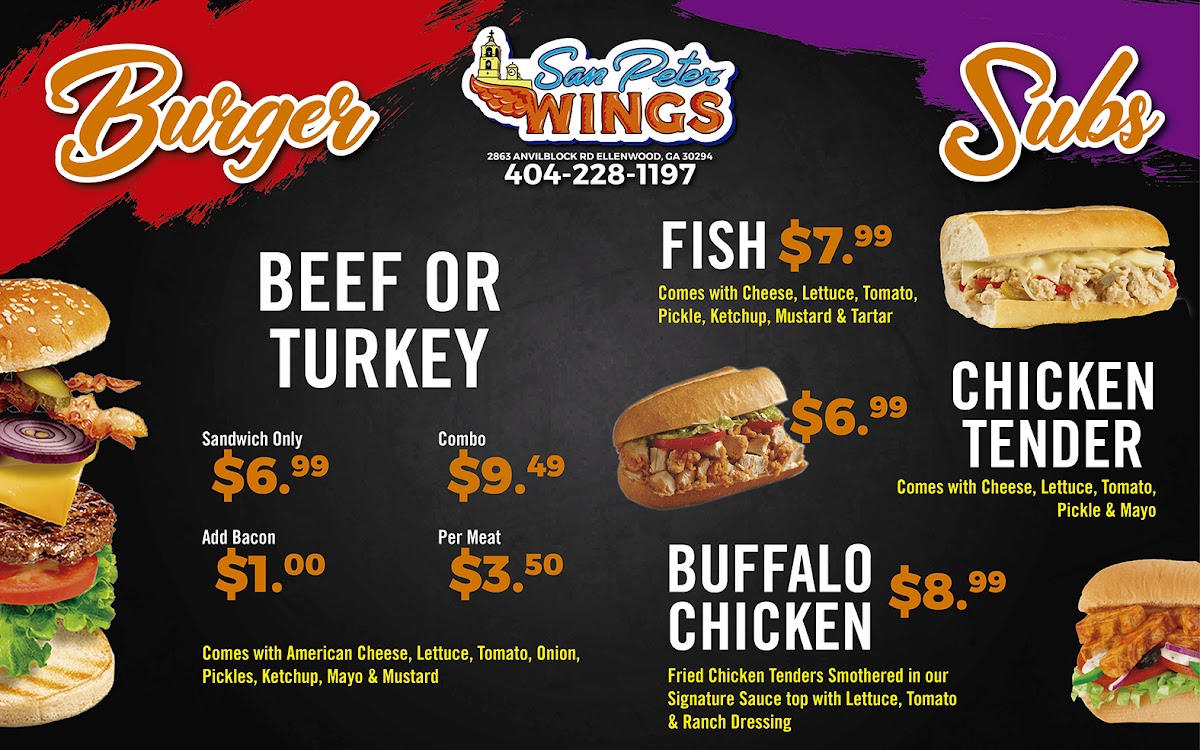 The menu at San Peter Wings offers a straightforward selection of comforting, casual bites designed for easy, satisfying meals any time of day. Whether you’re stopping by for a quick lunch, a relaxed dinner, or a laid-back snack, the dishes here match the inviting and unpretentious vibe of the spot.